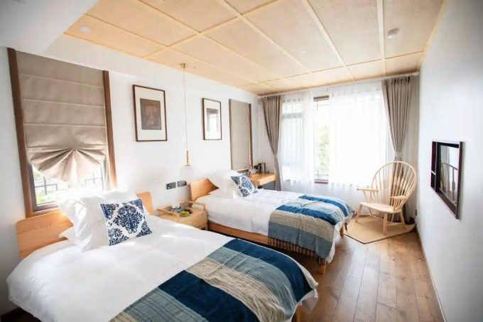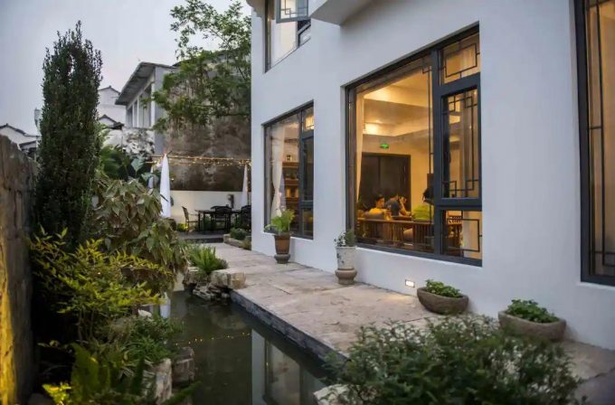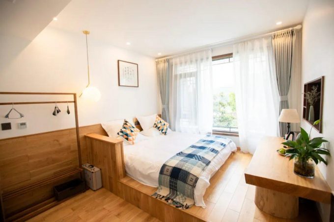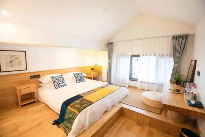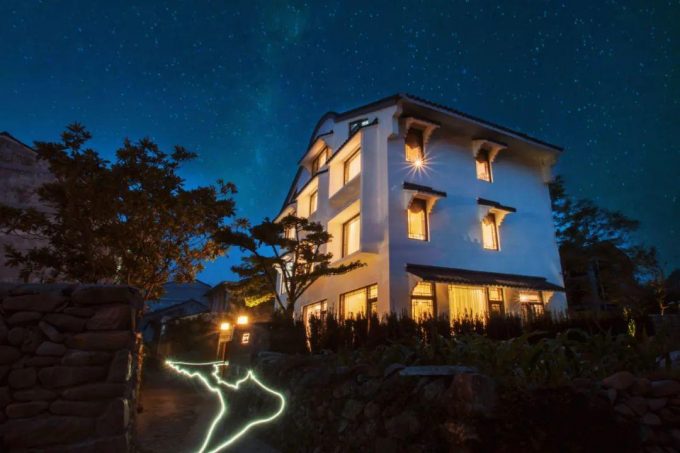 还有这家白墙黛瓦,树木掩映的古朴民宿