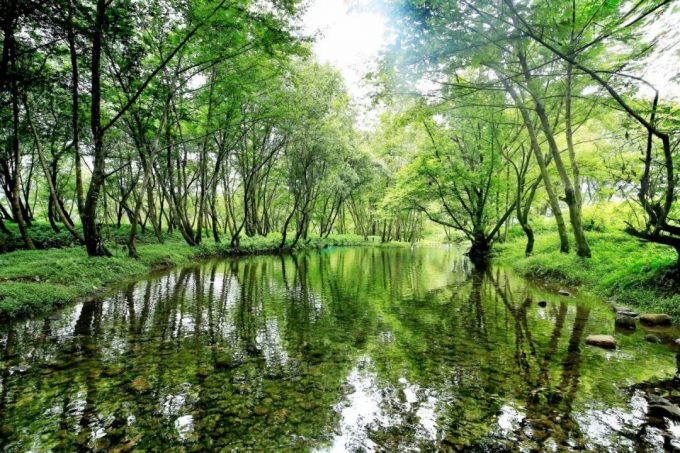 从墨客休舍出发至枫林滩林,车程约5分钟,步行约20分钟